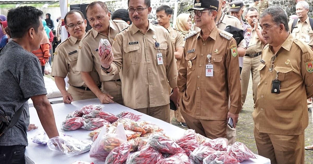Caption : Pj Bupati Magelang Sepyo Achanto didampingi Kepala Distan Pangan dan Kepala Disdakop UKM saat meninjau kegiatan Gerakan Pangan Murah di halaman Kantor Kecamatan Ngablak.(haq)